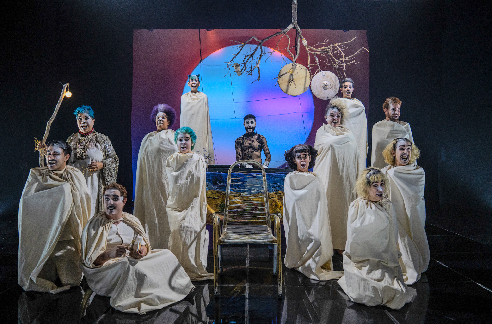 Sob direção musical de Everton Gennari, “Saudade” se constrói na intersecção entre o teatro popular e uma pesquisa multicultural, tendo a música como papel central na construção da peça. O espetáculo se apoia em canções tradicionais em português, espanhol, francês, italiano e latim – repertórios populares e amplamente reconhecíveis, capazes de acionar referências afetivas e experiências inscritas no imaginário coletivo. Mais do que acompanhar a ação, a música organiza a progressão das cenas e cria um espaço de comunhão entre palco e plateia, no qual o canto coletivo atravessa línguas, territórios e gerações, reforçando a dimensão compartilhada da experiência cênica.