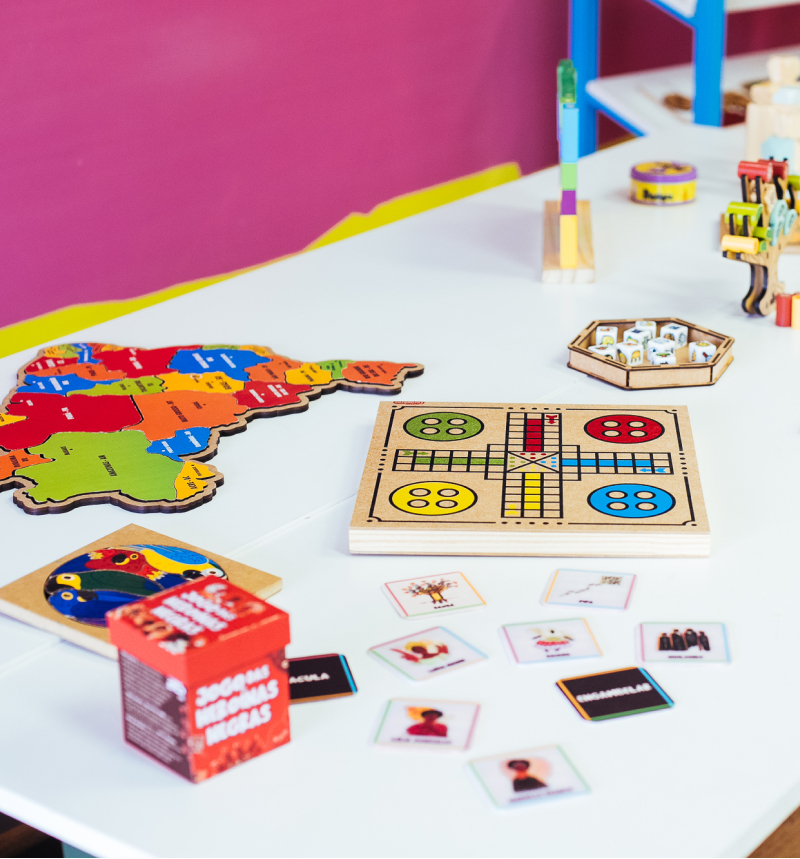 Jogo das Heroínas Negras — Criação exclusiva do Educativo, que amplia o sentido do brincar ao combinar cartas com personagens, objetos, palavras e símbolos da ancestralidade africana no Brasil. Os participantes constroem histórias que ressaltam o protagonismo feminino, o pertencimento e a diversidade das experiências negras no país.