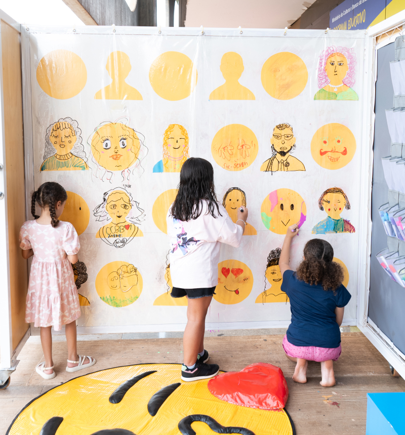 O Espaço Conexão é uma estação interativa pensada para estimular a criatividade, a experimentação e o diálogo com os conteúdos das exposições. Durante as férias o público é convidado a montar grandes quebra-cabeças com imagens da Coleção de Arte Banco do Brasil. Em outro dispositivo, os participantes inventam seus próprios “emojis” num ambiente que dialoga com a exposição MEME: No Brasil da memeficação.