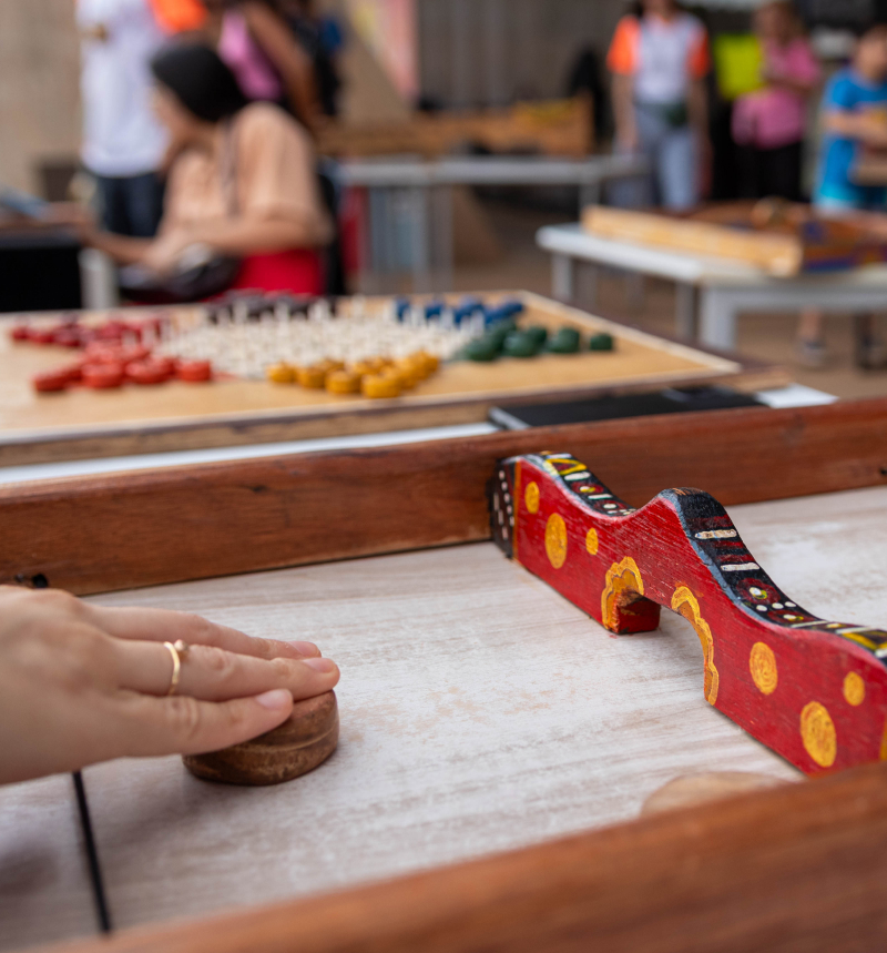 Pessoas de todas as idades podem jogar e se divertir com réplicas de Jogos antigos feitos a mão, com madeiras recicladas. Jogos milenares, africanos, ameríndios e medievais considerados Patrimônio da Humanidade, resgatam histórias e memórias de culturas ancestrais. Uma ação que valoriza as atividades coletivas ao ar livre, além de ativar o espírito lúdico presente nas pessoas de todas as idades.