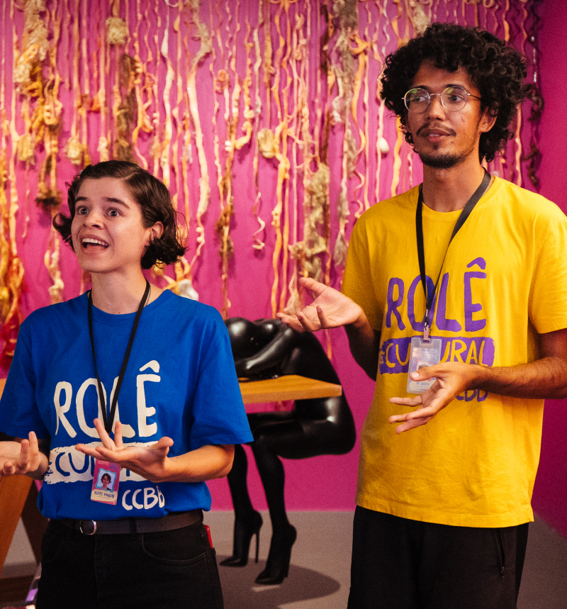 Durante as férias, o Rolê Cultural celebra o encontro entre Artes Visuais, Música, Teatro e Dança, oferecendo ao público uma intervenção cênica única. A visita-espetáculo conduz os participantes por um percurso sensível pelo CCBB, revelando diálogos entre arte, patrimônio e arquitetura. Educadores-artistas guiam essa jornada lúdica, estimulando a descoberta de detalhes ocultos nas obras em espaços abertos e exposições do CCBB. Mais do que um passeio, é uma experiência que desperta memórias, significados e afetos, convidando cada pessoa a se reconhecer na diversidade da arte.