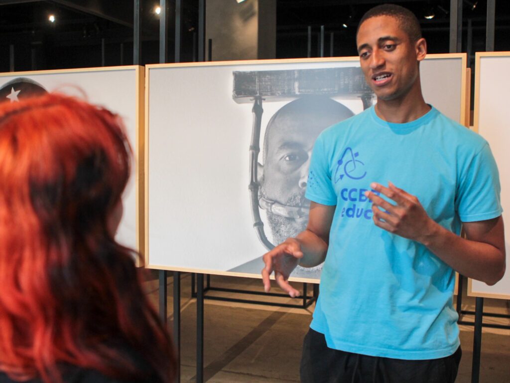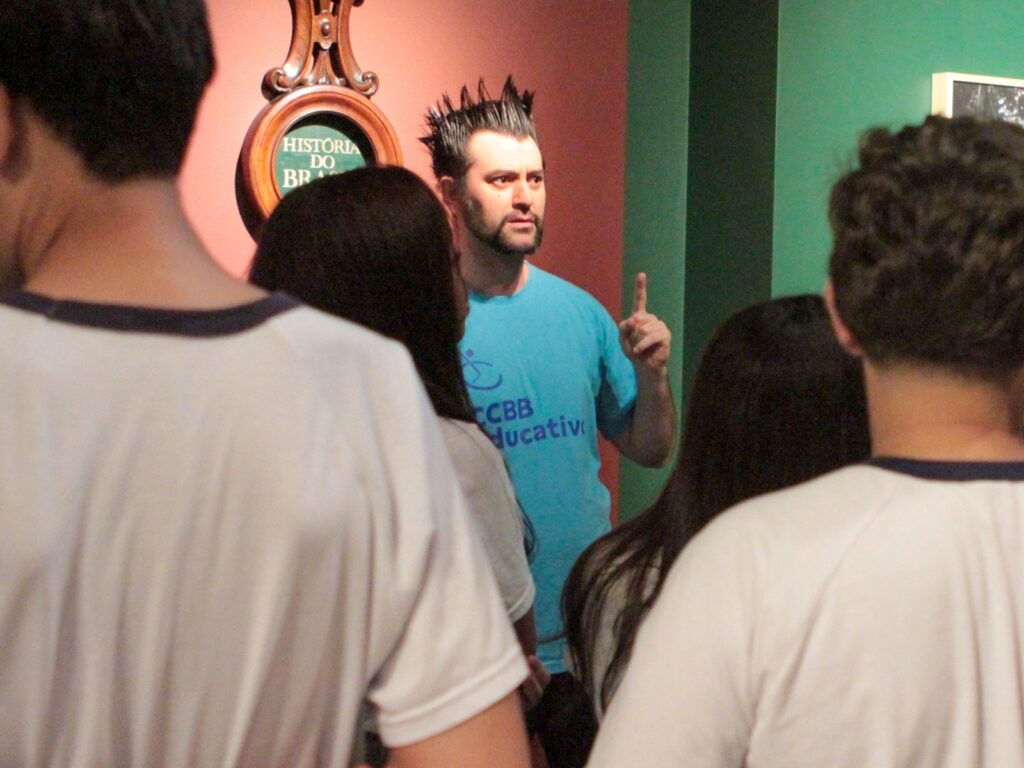 Visitas mediadas aos espaços expositivos ou prédio histórico do CCBB, elaboradas pela equipe educativa, para diálogo com o público e aprofundamento sobre a programação. As visitas visam contribuir com a experiência de estar com arte, ampliando e conhecendo novos repertórios, por meio de uma conversa cheia de trocas de saberes. A atividade atende a grupos de estudantes, professores, organizações sociais, instituições culturais e museológicas.