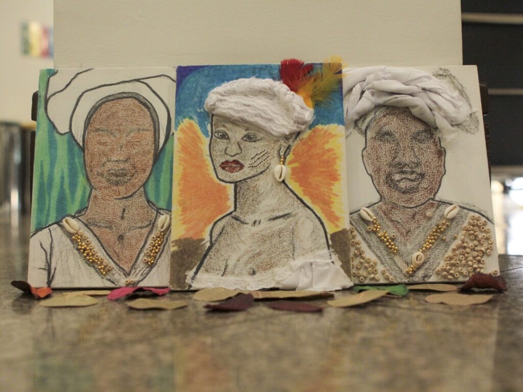 reconstituição de três importantes protagonistas da história do Brasil: Luiza Mahin, Thereza de Benguela e Maria Felipa. Na atividade FaBrincando - Faces Negras Importam, cada participante vai representar sua versão dessas heroínas a partir de dados históricos numa proposta de pintura expandida