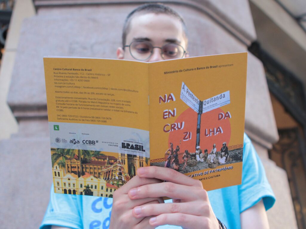 Patrimônio na Encruzilhada é uma tarde de atividades e brincadeiras afrocentradas. O patrimônio é o CCBB, com seu prédio histórico na encruzilhada da rua Álvares Penteado e rua da Quitanda. Haverá distribuição do Caderno Educativo Na Encruzilhada que compartilha interpretações sobre a história de ocupação do Centro da Cidade em diálogos culturais com a diáspora negra e saberes indígenas