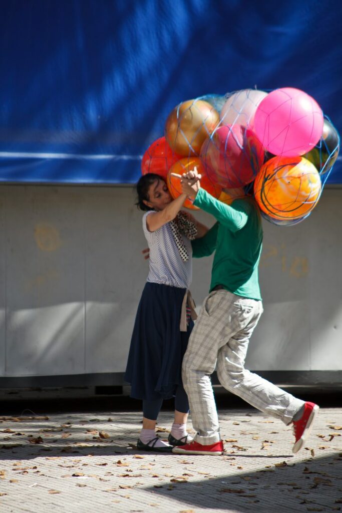 Uma roda de samba dançante toma conta da rua! Professores e bailarinos convidam o público a aprender passos, arriscar movimentos e se deixar levar pelo ritmo. Sextou e todos são bem-vindos para entrar na dança e transformar a rua em uma grande celebração.
