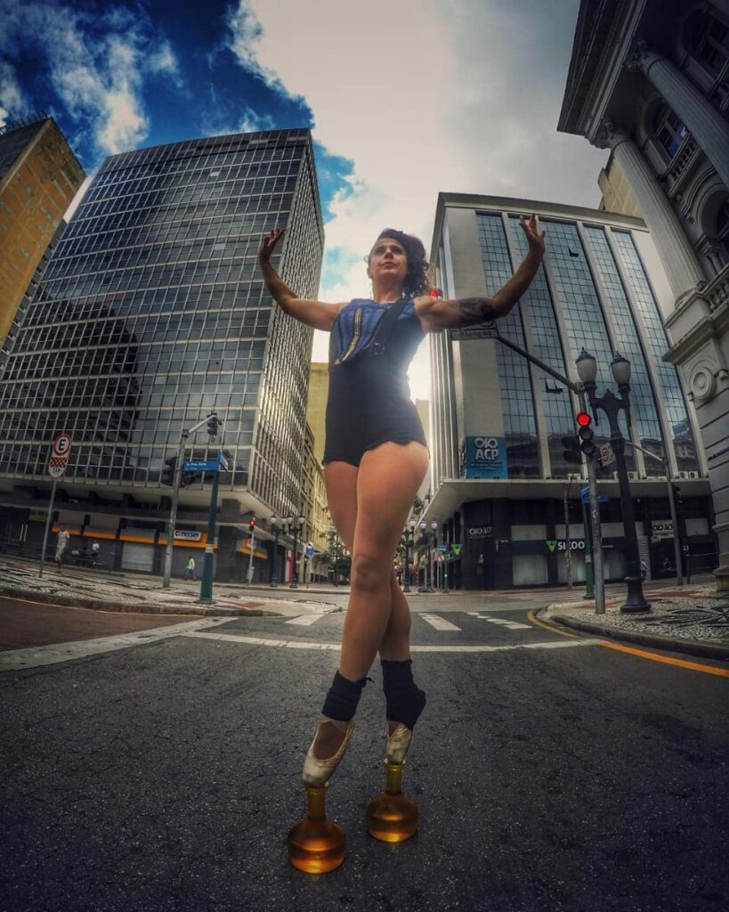 Em “Equilíbrios Provisórios” o corpo negocia a cada instante com a queda. O corpo feminino, historicamente vigiado, domesticado, esculpido, aqui se afirma como potência instável, indomável, presente. A sapatilha de ponta, símbolo da rigidez clássica, se torna ferramenta de subversão: flutua, resiste, fere o vidro e segue. Equilibrar-se é, talvez, o verbo mais honesto do agora. Não há garantias. Há tentativa. Há coragem. Há poesia. uma travessia entre a arte e o abismo celebrando com cada passo, a possibilidade de seguir mesmo sabendo que tudo é passageiro. Nada é fixo, nada é garantido o equilíbrio, aqui, é instante.